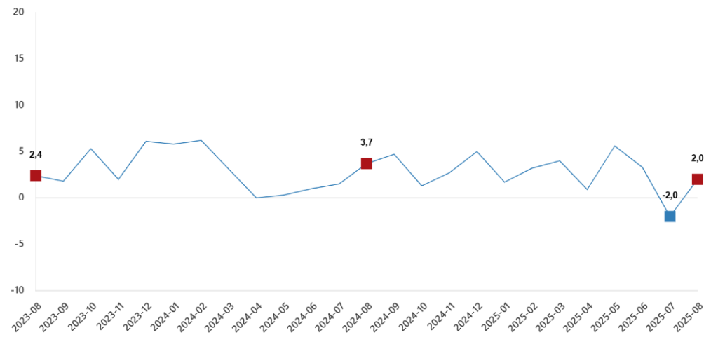 Toplam ciro aylık değişim oranı(%), Ağustos 2025