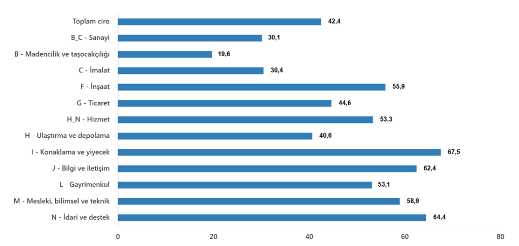 Toplam cironun alt detaylarına bakıldığında; 2024 yılı Kasım ayında yıllık sanayi sektörü ciro endeksi %30,1 arttı, inşaat ciro endeksi %55,9 arttı, ticaret ciro endeksi %44,6 arttı, hizmet ciro endeksi %53,3 arttı.