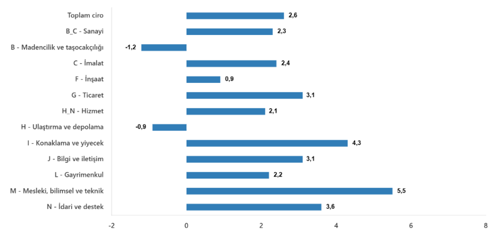 Toplam ciro aylık %2,6 arttı