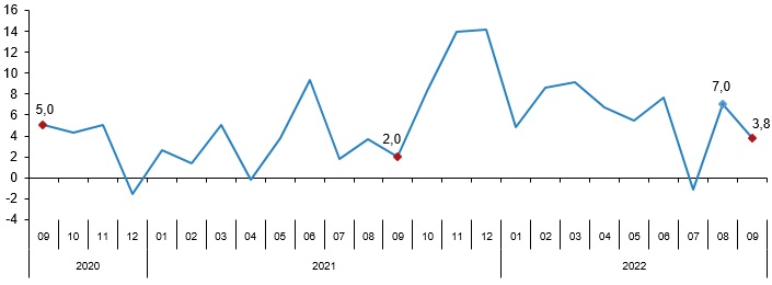 Ciro endeksleri aylık değişim oranları (%), Eylül 2022
