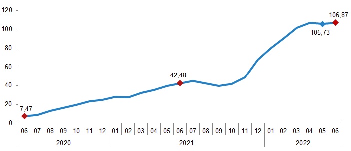 İnşaat maliyet endeksi, 2022 yılı Haziran ayında bir önceki aya göre %3,47, bir önceki yılın aynı ayına göre %106,87 arttı. Bir önceki aya göre malzeme endeksi %4,16, işçilik endeksi %0,72 arttı. Ayrıca bir önceki yılın aynı ayına göre malzeme endeksi %130,59, işçilik endeksi %45,67 arttı.