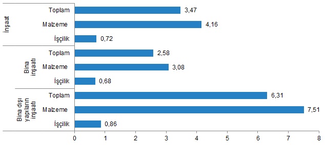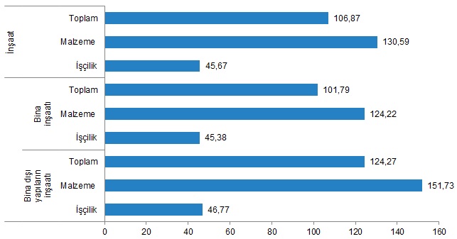 Bina inşaatı maliyet endeksi, bir önceki aya göre %2,58, bir önceki yılın aynı ayına göre %101,79 arttı. Bir önceki aya göre malzeme endeksi %3,08, işçilik endeksi %0,68 arttı. Ayrıca bir önceki yılın aynı ayına göre malzeme endeksi %124,22, işçilik endeksi %45,38 arttı.