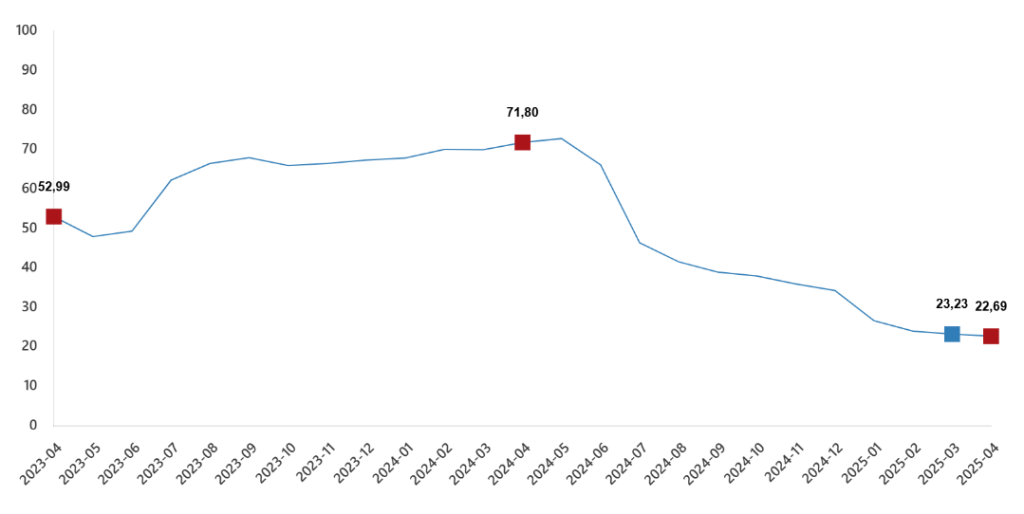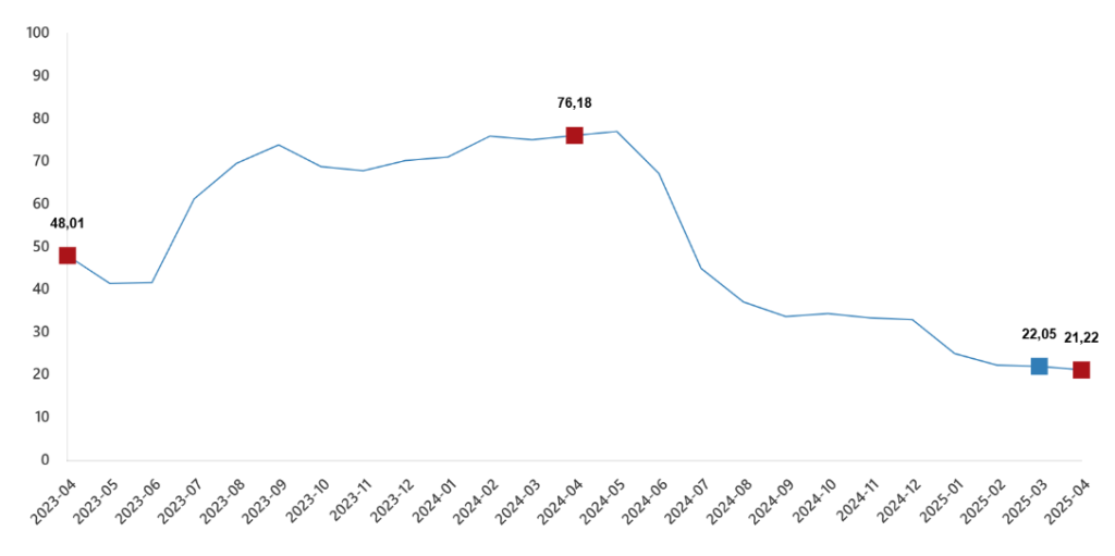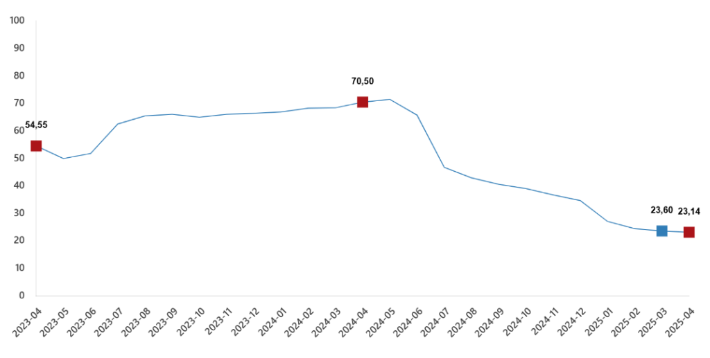İnşaat maliyet endeksi yıllık değişim oranı(%), Nisan 2025
