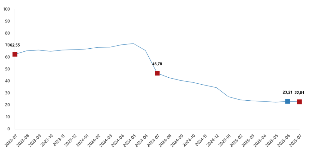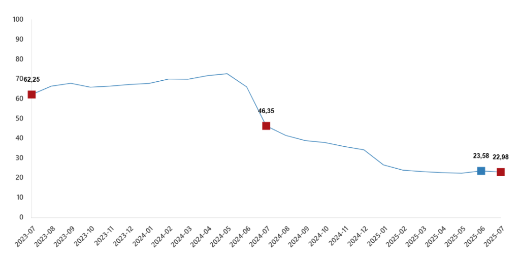İnşaat maliyet endeksi yıllık değişim oranı(%), Temmuz 2025