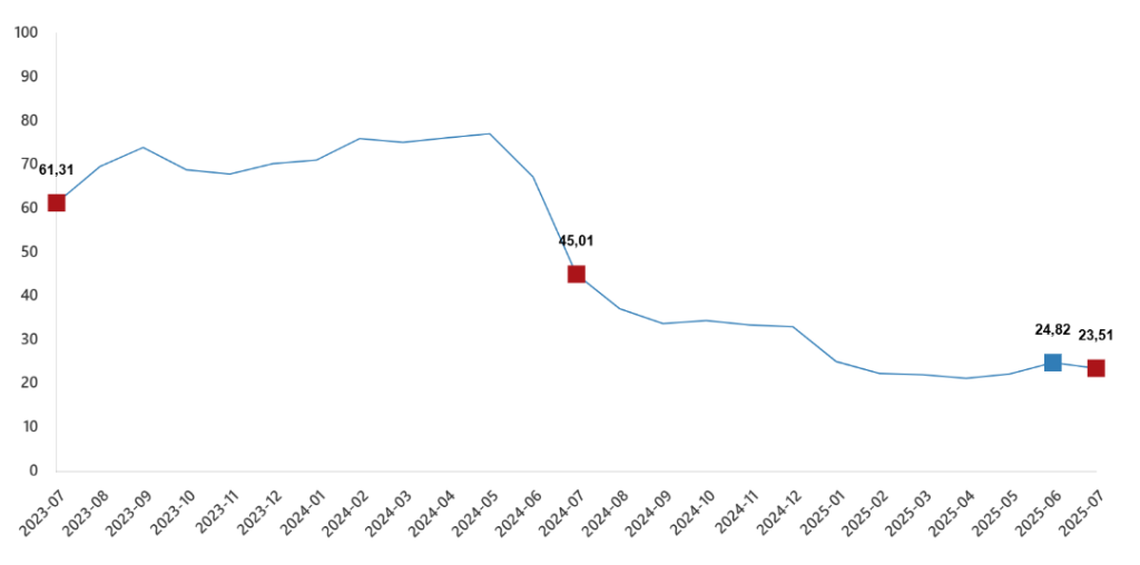 İnşaat maliyet endeksi yıllık değişim oranları(%), Temmuz 2025