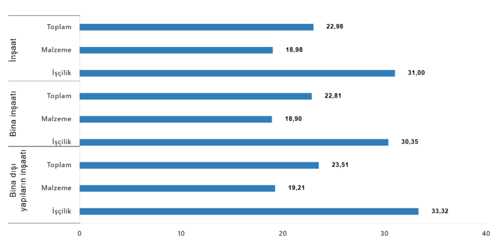 Bina inşaatı maliyet endeksi, bir önceki aya göre %1,21 arttı, bir önceki yılın aynı ayına göre %22,81 arttı. Bir önceki aya göre malzeme endeksi %1,55 arttı, işçilik endeksi %0,61 arttı. Ayrıca bir önceki yılın aynı ayına göre malzeme endeksi %18,90 arttı, işçilik endeksi %30,35 arttı.
