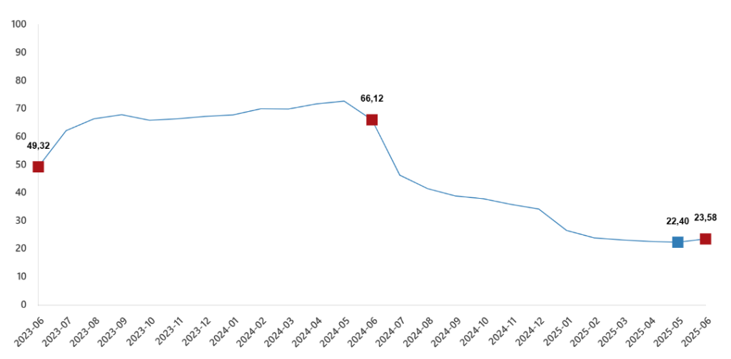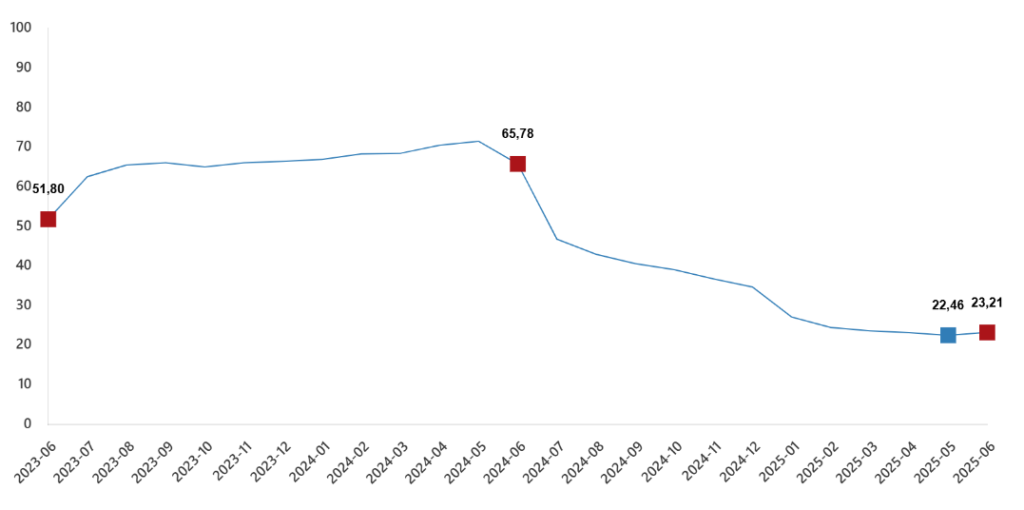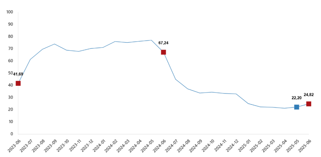 İnşaat maliyet endeksi yıllık değişim oranı(%), Haziran 2025