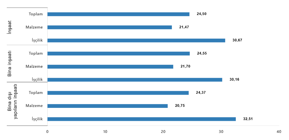 Bina inşaatı maliyet endeksi, bir önceki aya göre %1,52 arttı, bir önceki yılın aynı ayına göre %24,55 arttı. Bir önceki aya göre malzeme endeksi %1,79 arttı, işçilik endeksi %1,01 arttı. Ayrıca bir önceki yılın aynı ayına göre malzeme endeksi %21,70 arttı, işçilik endeksi %30,16 arttı.