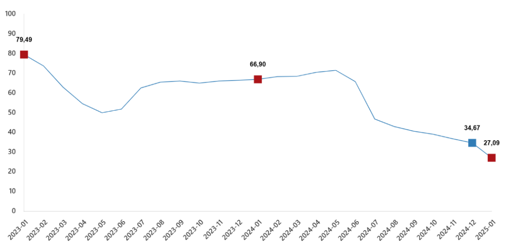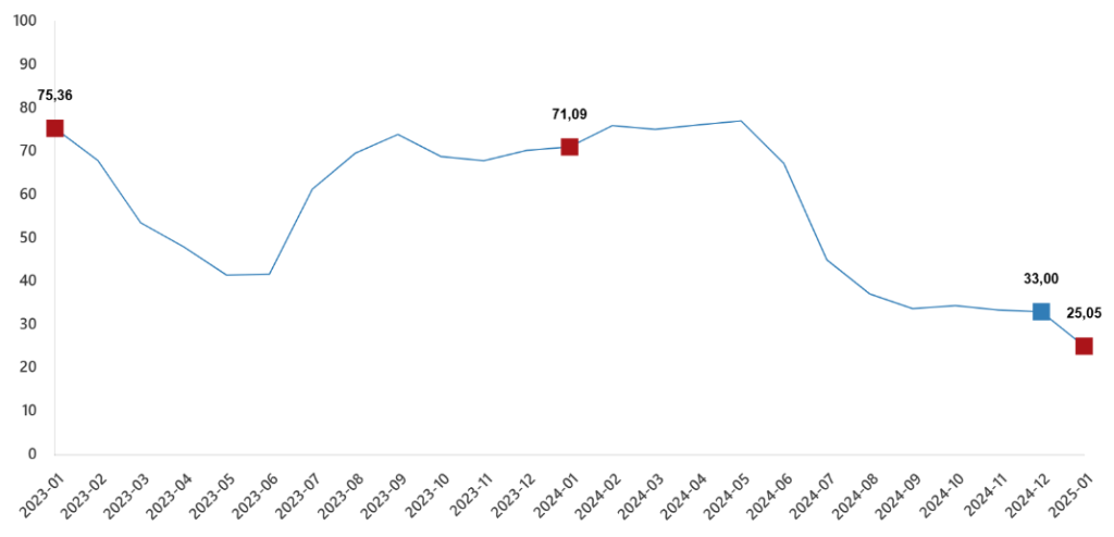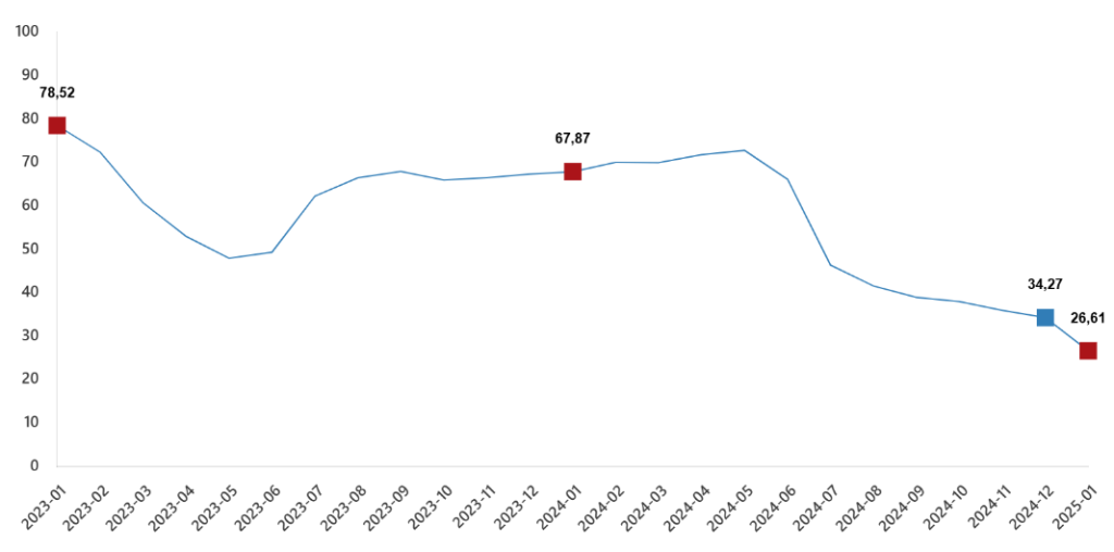 İnşaat maliyet endeksi yıllık değişim oranı(%), Ocak 2025
