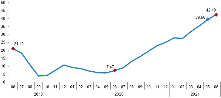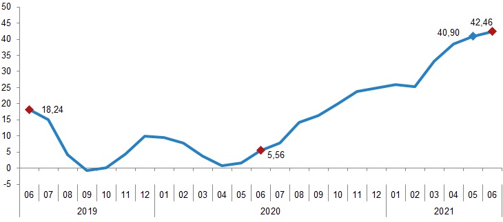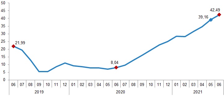 İnşaat maliyet endeksi yıllık değişim oranları (%), Haziran 2021