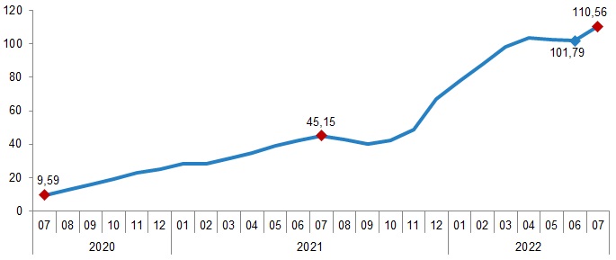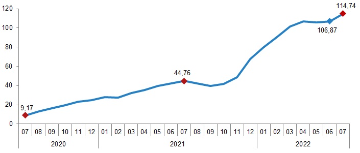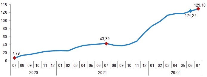 İnşaat maliyet endeksi, 2022 yılı Temmuz ayında bir önceki aya göre %6,46, bir önceki yılın aynı ayına göre %114,74 arttı. Bir önceki aya göre malzeme endeksi %1,29, işçilik endeksi %27,57 arttı. Ayrıca bir önceki yılın aynı ayına göre malzeme endeksi %126,46, işçilik endeksi %83,89 arttı.