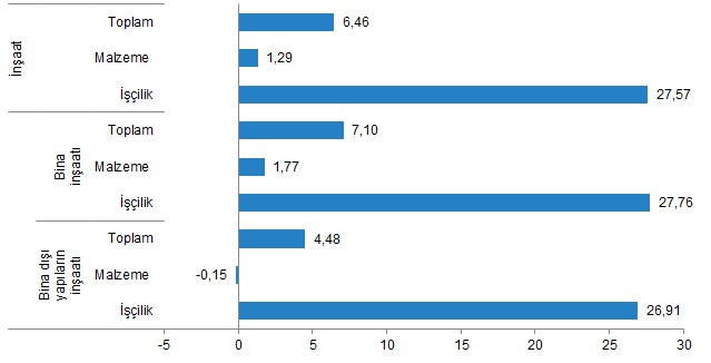 Bina inşaatı maliyet endeksi, Temmuz ayında bir önceki aya göre %7,10, bir önceki yılın aynı ayına göre %110,56 arttı. Bir önceki aya göre malzeme endeksi %1,77, işçilik endeksi %27,76 arttı. Ayrıca bir önceki yılın aynı ayına göre malzeme endeksi %120,93, işçilik endeksi %83,90 arttı.