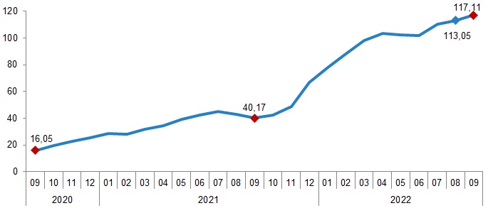 İnşaat maliyet endeksi yıllık değişim oranı (%), Eylül 2022
