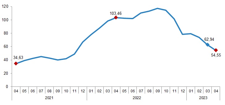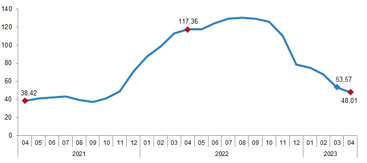 İnşaat maliyet endeksi yıllık değişim oranları (%), Nisan 2023