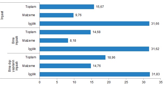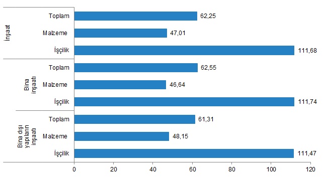 Bina inşaatı maliyet endeksi, bir önceki aya göre %14,68, bir önceki yılın aynı ayına göre %62,55 arttı. Bir önceki aya göre malzeme endeksi %8,18, işçilik endeksi %31,62 arttı. Ayrıca bir önceki yılın aynı ayına göre malzeme endeksi %46,64, işçilik endeksi %111,74 arttı.
