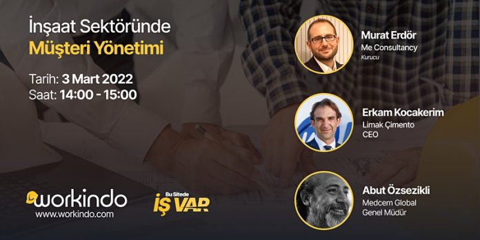 Workindo’nun düzenlediği “İnşaat Sektörü Buluşmaları” adlı etkinlik dizisinin ikinci buluşmasında konuklar sektörde müşteri ilişkileri yönetimine dair soruları yanıtlayacak.