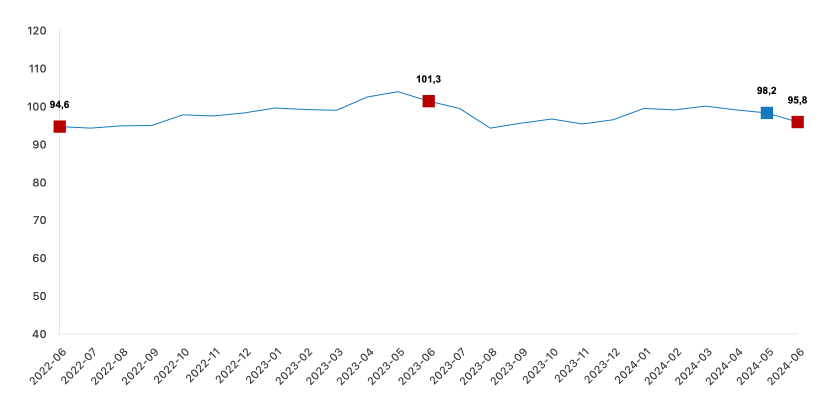 Ekonomik güven endeksi, güven endeksleri ve değişim oranları, Haziran 2024