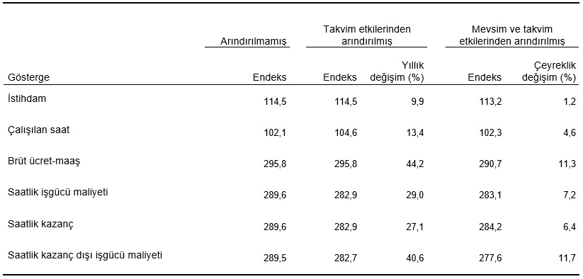 Türkiye İstatistik Kurumu (TÜİK), 2021 yılı 3. çeyrek (temmuz, ağustos, eylül) İşgücü Girdi Endeksleri sonuçlarını açıkladı.