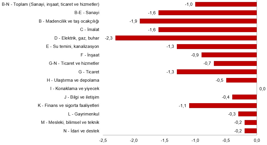 Ücretli çalışan sayısı aylık %1,0 azaldı