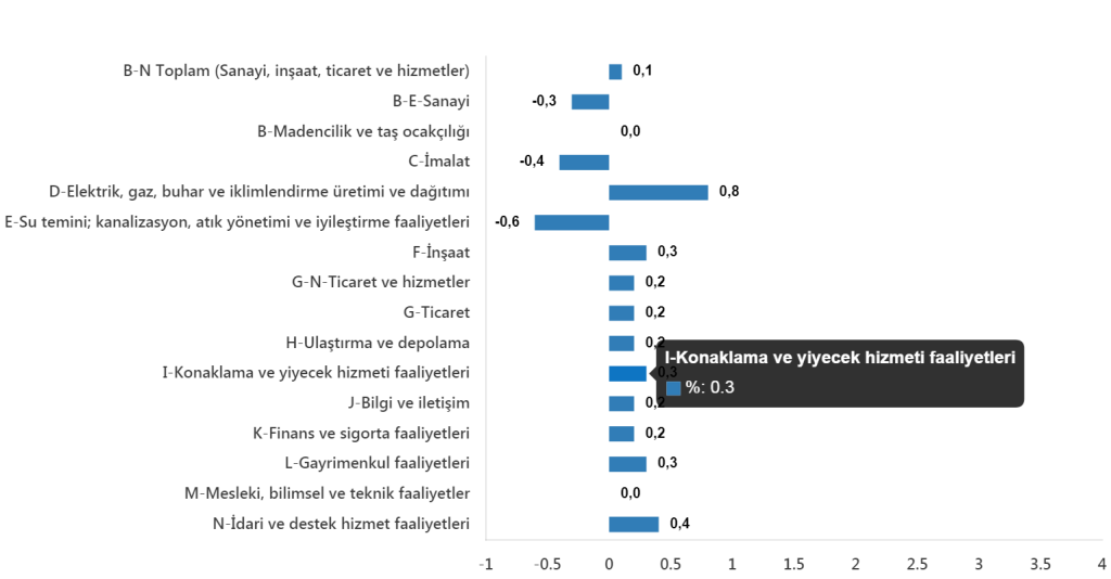 | I-Konaklama ve yiyecek hizmeti faaliyetleri | 1 288 188 | 1 220 569 | 67 619 | 5,5 |