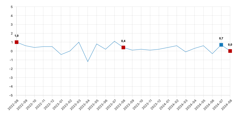 Ücretli çalışanların aylık değişim oranları (%), Ağustos 2024