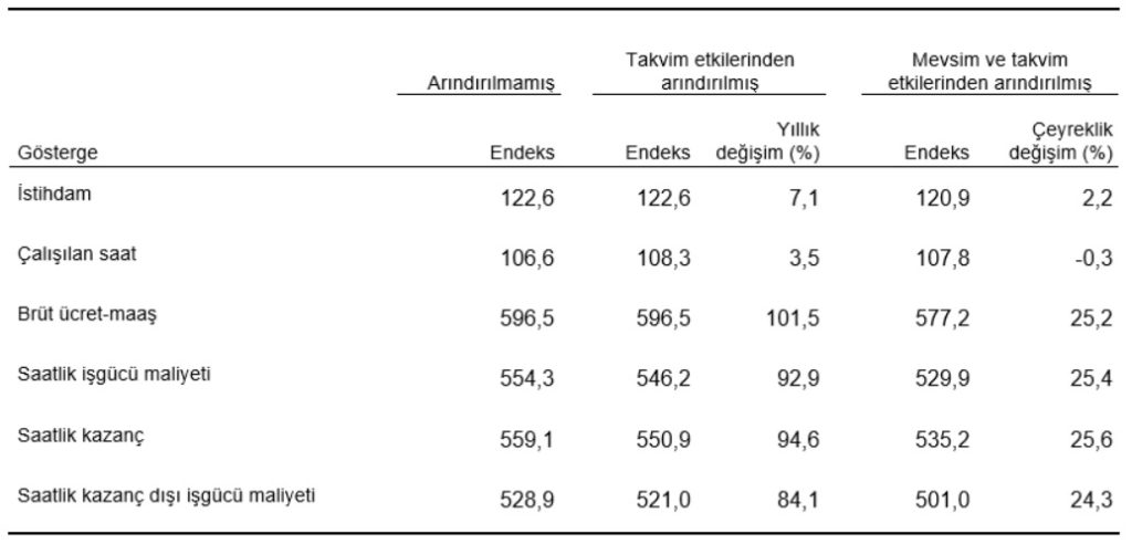Brüt ücret-maaş endeksi çeyreklik %25,2 arttı