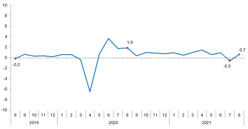 Ücretli çalışanların aylık değişim oranları (%), Ağustos 2021