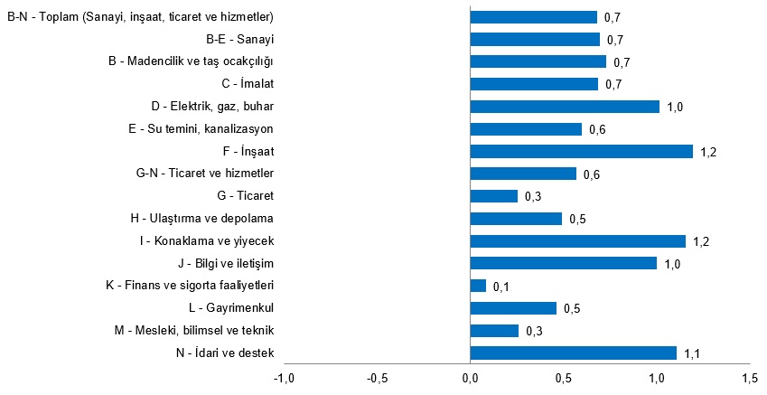 Sanayi, inşaat ve ticaret-hizmet sektörleri toplamında ücretli çalışan sayısı 2021 Ağustos ayında bir önceki aya göre %0,7 arttı.