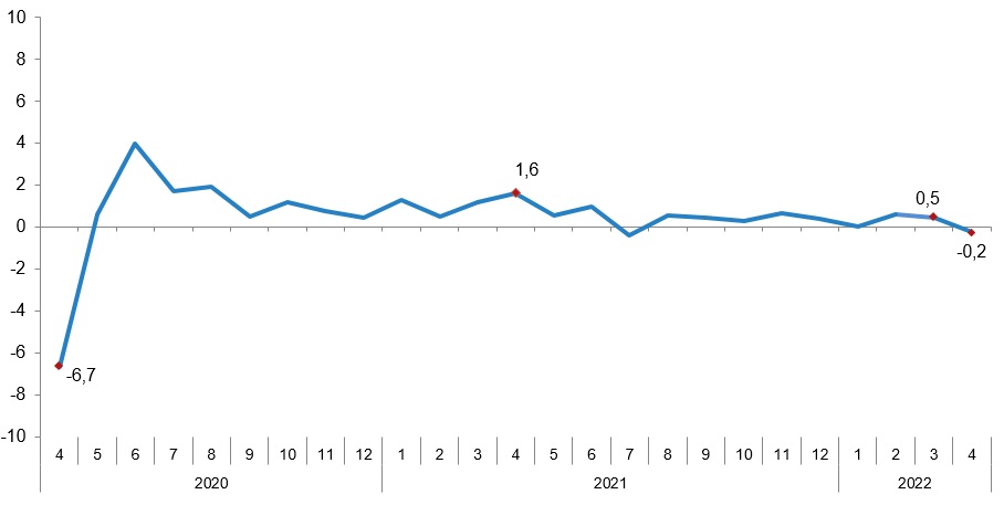 Ücretli çalışanların aylık değişim oranları (%), Nisan 2022