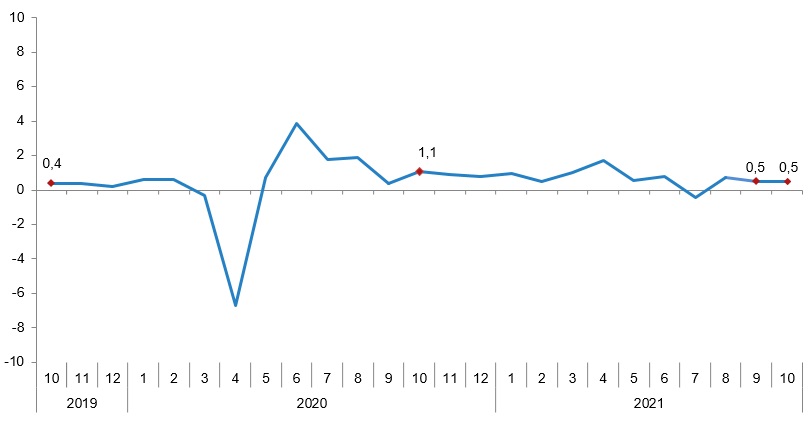 Ücretli çalışanların aylık değişim oranları (%), Ekim 2021