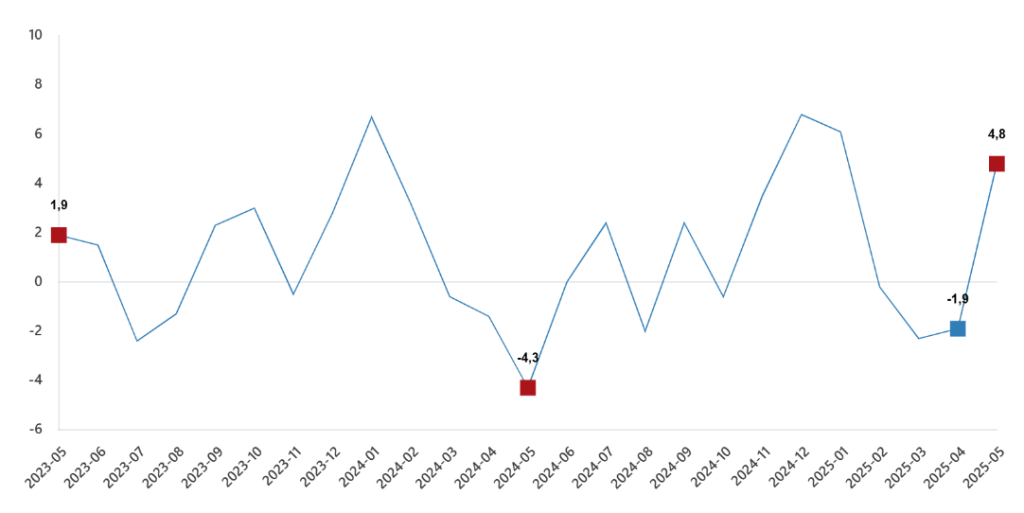 İnşaat üretim endeksi aylık değişimleri(%), Mayıs 2025