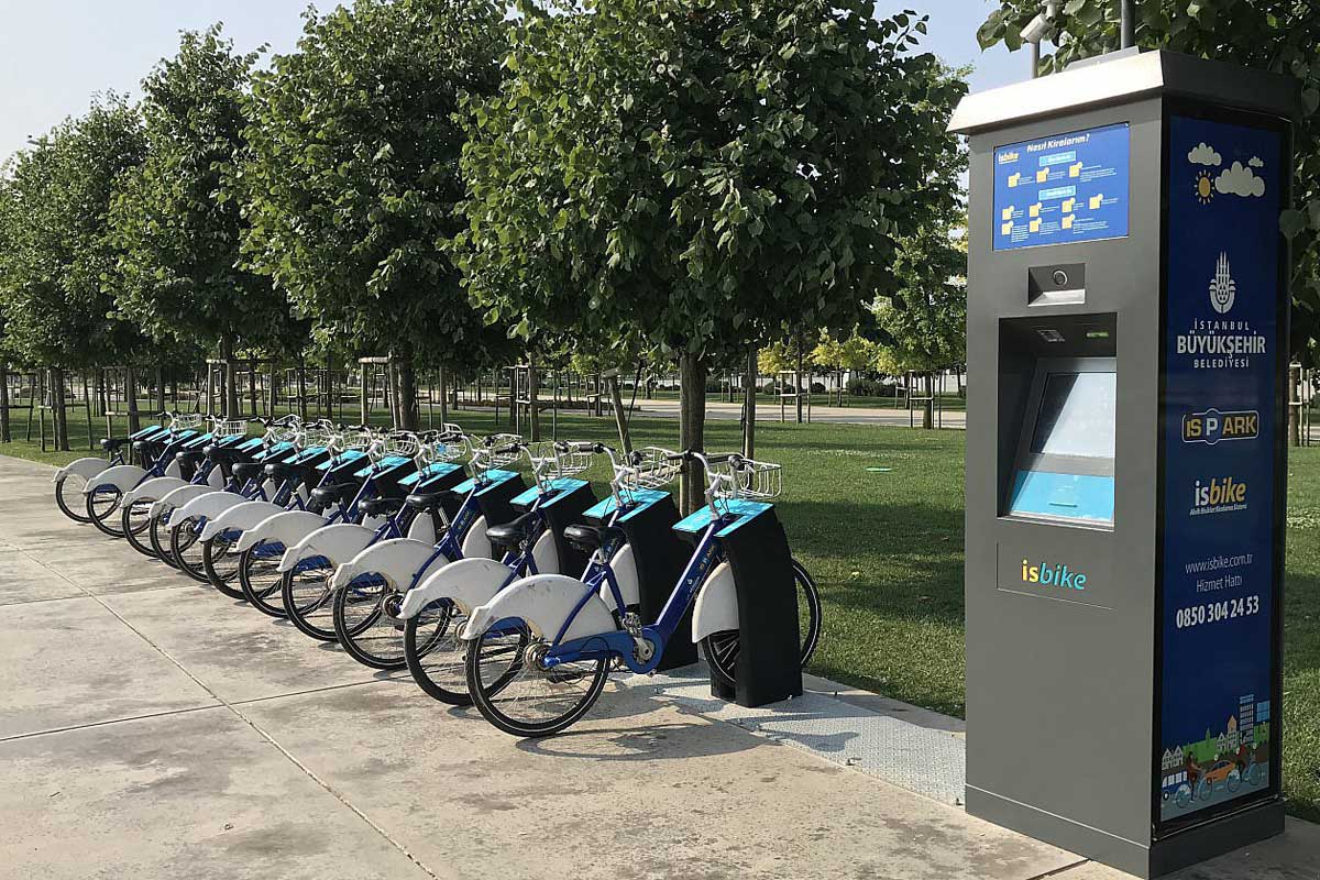 Akıllı Bisiklet Kiralama Sistemi olan İSBİKE bugün itibarıyla Avrupa yakasında 102 istasyonda 1120 bisikleti, Anadolu yakasında da 38 istasyonda 380 bisikletiyle İstanbullulara hizmet veriyor.