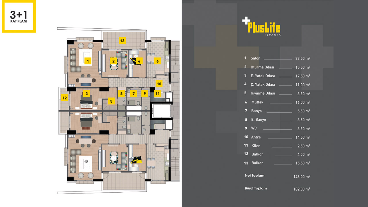 Isparta’nın merkezinde Maviler İnşaat tarafından yapımına başlanan Plus Life projesi içerisinde 266 konut ve 22 ticari merkez bulunuyor. Konutlar 3+1 ve 4+1 şeklinde yükseliyor. Daire büyüklükleri ise 182 metrekareden başlayıp 211 metrekareye kadar değişebiliyor. Projede dikkatleri çeken en büyük özellik ise akıllı ev sistemi ile zenginleştirilmiş olması.