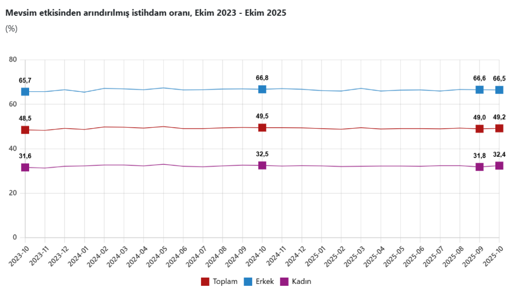 Mevsim etkisinden arındırılmış istihdam oranı %49,2 oldu