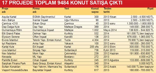Yeni konut projelerini satışa sunan firmalar arasında sektörün deneyimli firması İnanlar İnşaat ve ilginç tasarımlarıyla dikkat çeken Dap Yapı da bulunuyor. Anadolu yakasının bir diğer önemli projesi ise finans merkezi olarak belirlenen Ataşehir’de yükseliyor. Sarp Group’un inşa ettiği Sarphan Finans Park da iddialı projeler arasında yer alıyor.