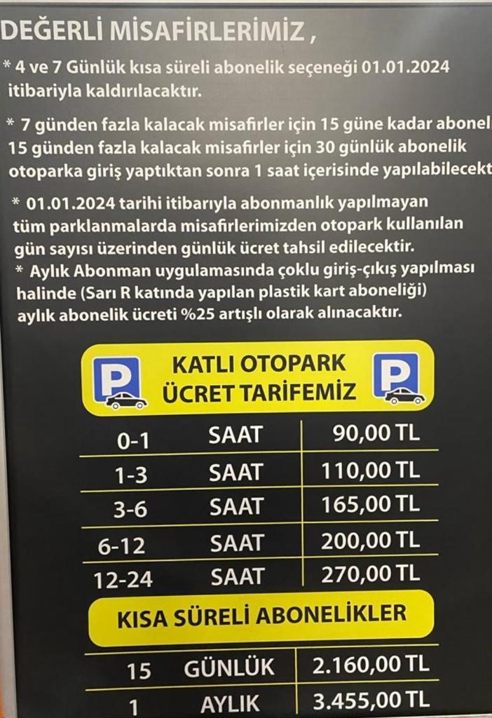 İstanbul Havalimanı’nda otomobillerin bir saat için kapalı otopark ücreti 66 liradan 90 liraya açık otopark ücreti ise 52 liradan 70 liraya çıktı.