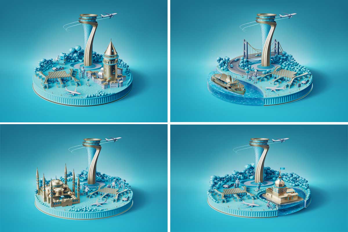 İstanbul’dan ilham alınarak oluşturulan tasarımlar, masal aleminin tam kalbinde, dünyadaki şehir simgelerinin merkezinde yükselen altın parlaklığındaki İstanbul Havalimanı’nı, sadece bir havalimanı olmanın ötesine taşıyor, dünyaya mal olmuş ve geleceğe miras bir anıt olarak konumluyor ve en önemlisi anıtlaştırılıyor.