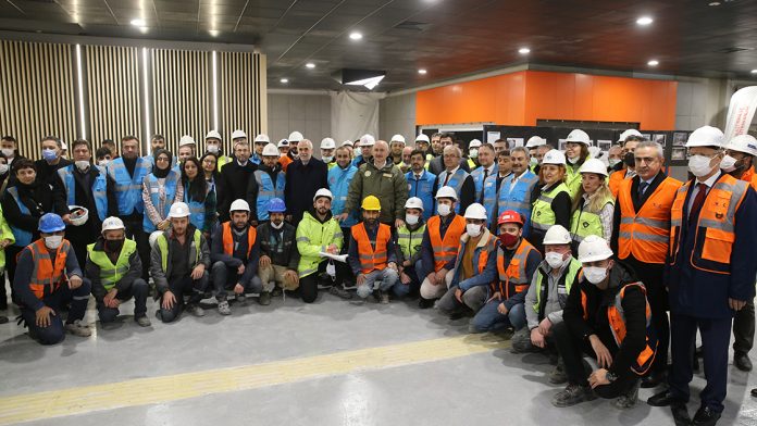 “İstanbul’u birilerinin keyfine bırakamazdık. Bu nedenle Pendik-Tavşantepe-Sabiha Gökçen Havalimanı metro hattı dahil İstanbul’da toplam uzunluğu 103,3 kilometre olan 7 ayrı raylı sistem hattında harıl harıl çalışıyoruz. Bakırköy (İDO)-Bahçelievler-Güngören-Bağcılar (Kirazlı) metro hattı, Başakşehir-Çam ve Sakura Hastanesi-Kayaşehir metro hattı, Küçükçekmece-Halkalı-Başakşehir-Arnavutköy-İstanbul Havalimanı metro hattı, Beşiktaş (Gayrettepe)-Kağıthane-Eyüp-İstanbul Havalimanı metro hattı, Üsküdar Altunizade-Çamlıca-Ferah Mahallesi-Bosna Bulvarı metro hattı ve Zeytinburnu (Kazlıçeşme)-Fatih (Sirkeci) Raylı Sistem ve Yaya Odaklı Yeni Nesil Ulaşım projeleri ile İstanbul’daki mevcut 251 kilometre olan raylı sistem uzunluğunu 354,3 kilometreye yükselteceğiz. Projelerimizi bu yılın ilk yarısından itibaren işletmeye açarak 2023 yılında hepsini halkımızın hizmetine sunmuş olacağız. Böylece İstanbul’daki raylı sistem ağının yüzde 52’si Bakanlığımız tarafından yapılmış olacaktır.