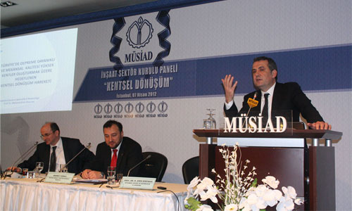 Panelin açılış konuşmasını yapan MÜSİAD İnşaat Sektör Kurulu Başkanı Mahmut Asmalı, kentsel dönüşümün memleket meselesi olduğunu söyledi. Asmalı bu konuda şunları söyledi; MÜSİAD olarak biz kentsel dönüşümün bir memleket meselesi olduğunu ve ülkemizin çözmesi gereken en önemli konulardan birisi olduğunu uzun süredir her ortamda ifade etmekteyiz. Bu konuda bir çok panel ve raporlar hazırladık.