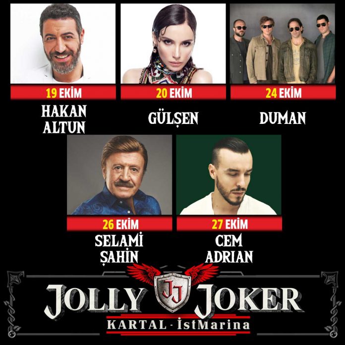 Hakan Altun’la 19 Ekim Cuma günü kapılarını açan Jolly Joker Kartal İstMarina’da programlar da belli oldu. Birbirinden değerli sanatçıların yer alacağı Jolly Joker Kartal İstMarina’da ikinci muhteşem gece ise 20 Ekim Cumartesi günü Gülşen ile gerçekleşecek. 24 Ekim Duman, 26 Ekim Selami Şahin, 27 Ekim Cem Adrian olarak belirlenen Ekim programının ardından Kasım ayında da Jolly Joker Kartal İstMarina’nın muhteşem eğlence programı tüm hızıyla devam edecek.