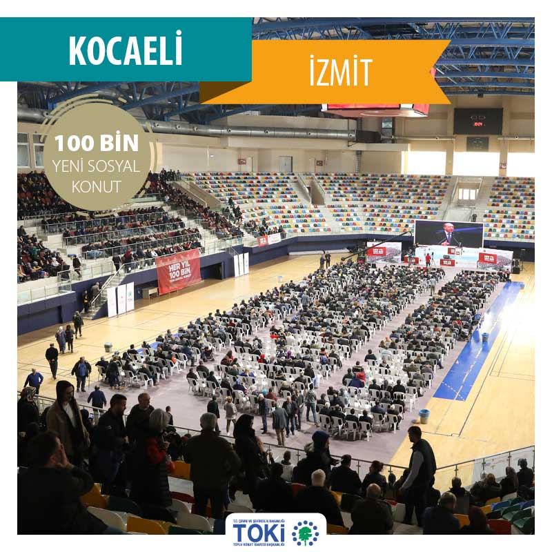 Bu kapsamda, 17 bin 797 vatandaşımızın başvurduğu Kocaeli’nin merkez İzmit ilçesinde ön taleplerin toplandığı 875’i 2+1, 375’i de 3+1 kat planındaki 1250 konutluk projede hak sahiplerinin belirlendiği kura çekilişi 11 mart 2020 çarşamba günü Şehit Recep Topaloğlu Spor Salonunda noter huzurunda gerçekleştirildi.