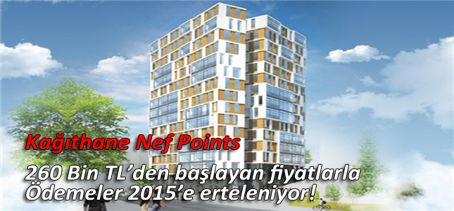 Nef Points 06'da konutlar 260 bin tl'den başlayan fiyatlarla satışa sunuluyor. Nef Points kampanyalı satışlarda banka kredisi avantajı uygulanırken aynı zamanda ödemeler 2015'e erteleniyor.