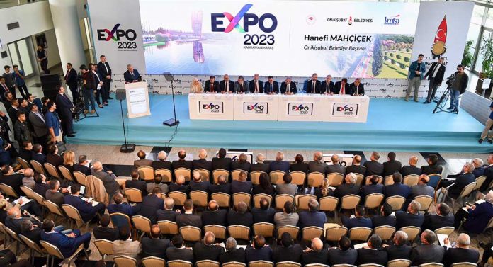 EXPO 2023 Kahramanmaraş’ın kamuoyuna tanıtım toplantısı; Tarım ve Orman Bakanı Dr. Bekir Pakdemirli, AK Parti Genel Başkan Yardımcısı Mahir Ünal, Kahramanmaraş Valisi Vahdettin Özkan, Kahramanmaraş Büyükşehir Belediye Başkanı Mehmet Fatih Erkoç ve Expo 2023‘ü Kahramanmaraş‘a getirme başarısı gösteren Onikişubat Belediye Başkanı Hanefi Mahçiçek’in katılımıyla gerçekleştirildi.