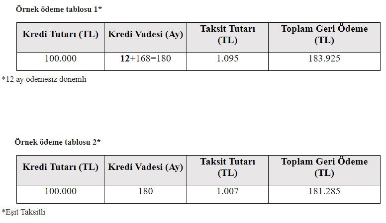 Mobilya, beyaz eşya-kahverengi küçük ev aletleri, ev boya-seramik-kapı ve pencere sistemleri, ev tekstil, çeyiz finansmanında azami 30.000 TL’ye kadar, 2. el otomobilde azami 150.000 TL’ye kadar finansman olanağı sunulacaktır.