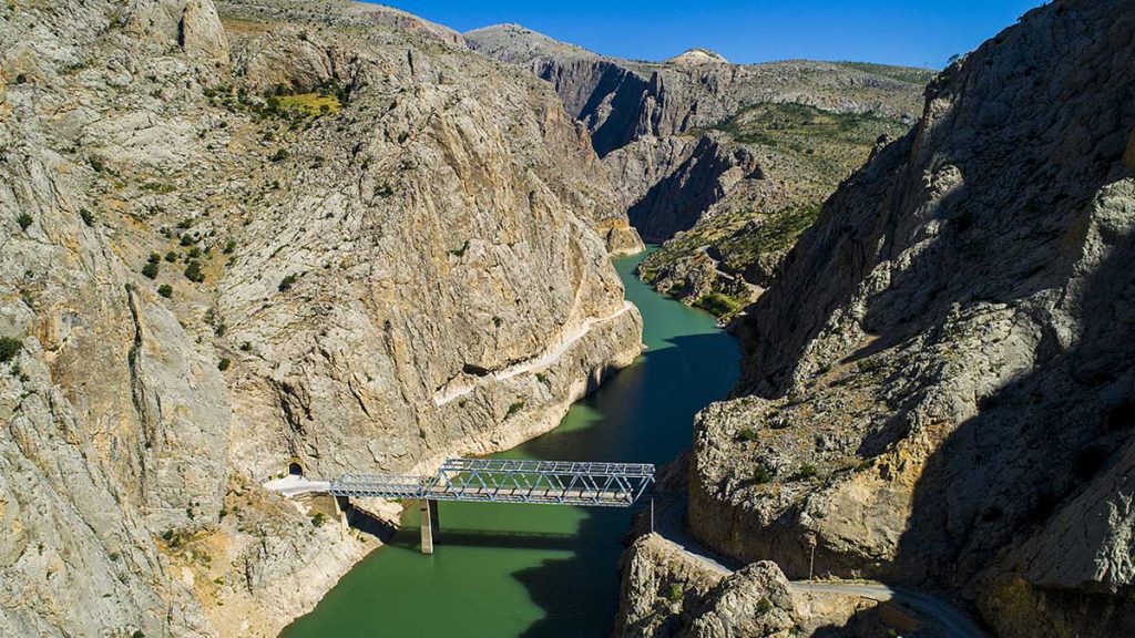 400-500 metrelik sarp kayalık yamaçların çevrelediği Karanlık Kanyon boyunca macera tutkunlarına nefis manzaralar sunan, Fırat Nehri kıyısında Kemaliye’den Divriği’ye uzanan Taş Yol, güzergahtaki irili ufaklı 38 tünel ile çok sayıda keskin viraj ve uçurumlarıyla artık ulaşımdan ziyade turizm amaçlı kullanılıyor.