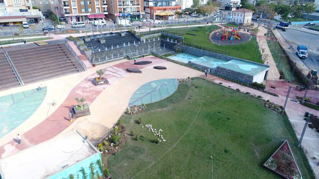 5 bin metrekarelik yeşil alana sahip meydan projesinde, yaklaşık 400 metrekarelik bir alanda yer alan süs havuzu ise granit kaplama ve ebatlı kayrak taşından oluşuyor. Komşuluk ve Dayanışma Meydanı’nda 800 metrekarelik ahşap zeminli bir amfinin yanı sıra 2 bin metrekarelik çatı bahçesi, ahşap oturma duvarları, dinlenme alanları ve kent mobilyaları da bulunuyor. Yaklaşık 500 metrekarelik bir alanı kaplayan 2 çocuk oyun alanında; temalı oyun grubu, çift ahşap tahterevalli, figürlü ahşap zıp zıp ve ahşap gondol salıncak yer alıyor. Projenin ilk aşaması olan “meydan ve park” kısmı tamamlanırken, ikinci aşaması olan “kültür merkezi ve yüzme havuzu” kısmında ise çalışmalar haftanın 7 günü devam ediyor. Proje tamamen bittiğinde, ilk aşamada yer alan yeşil alanlar ve meydana; yarı olimpik yüzme havuzu, çok amaçlı salonlar, sergi ve fuaye alanları, kütüphane, kafeterya, revir, kurs birimleri, spor salonu, otoparklar, tuvaletler ve teras da eklenmiş olacak.