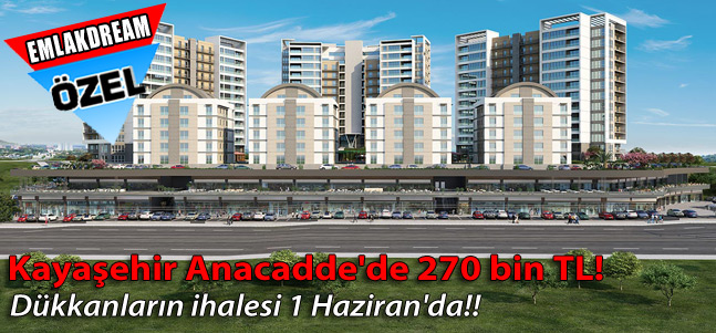 Kayaşehir Anacadde'de dükkanların muhammen bedeli 270 bin TL olarak belirlendi.
