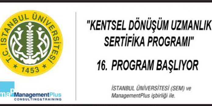 Kentsel Dönüşüm süreci içinde fiilen çalışan çok önemli uygulamacı hocalar tarafından verilen ve toplam 64 saat (8 gün) süren sertifika programı sonunda başarılı olan katılımcılara İstanbul Üniversitesinin uzmanlık sertifikası veriliyor.