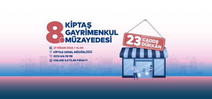 İstanbul Büyükşehir Belediyesi iştiraki olan İstanbul Konut İmar Plan Sanayi ve Ticaret A.Ş. ya da kamuoyunda bilinen adıyla KİPTAŞ’ın 8’inci Gayrimenkul Müzayedesi halka açık olarak 27 nisan çarşamba günü gerçekleştirilecek.