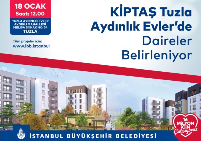 Daire belirleme kurası; 18 Ocak Çarşamba günü saat 12.00‘de İstanbul Büyükşehir Belediye Başkanı Ekrem İmamoğlu, KİPTAŞ Genel Müdürü Ali Kurt ve hak sahiplerinin katılımıyla Tuzla Aydınlık Evler’de yapılacak.